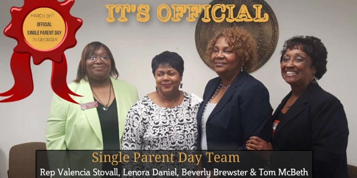 On May 7, 2018, Georgia House Resolution 279 was signed into law designating March 21st of each year as Single Parent Day. The lead bill sponsor was Georgia State Representative Valencia Stovall, District 74. The Founders of Georgia Single Parent Day are Beverly Brewster, Representative Valencia Stovall, Lenora Daniel, and Tom McBeth.